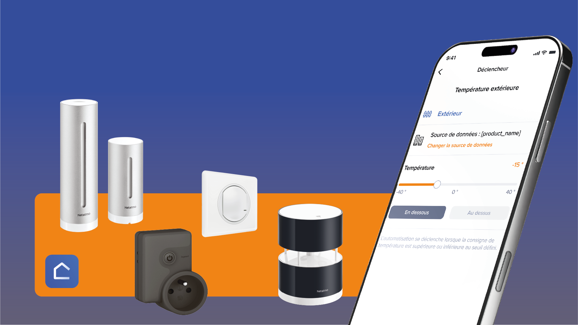 Désormais enrichis de nouveaux automatismes, les produits de la gamme Météo de Netatmo – dont la célèbre Station Météo, intégrée à l’écosystème Home + Control depuis l’an dernier – offrent une expérience encore plus complète. Couplés aux produits connectés Legrand with Netatmo au sein d’une même application, ces automatismes avancés permettent de gagner en confort et en économies d’énergie.
