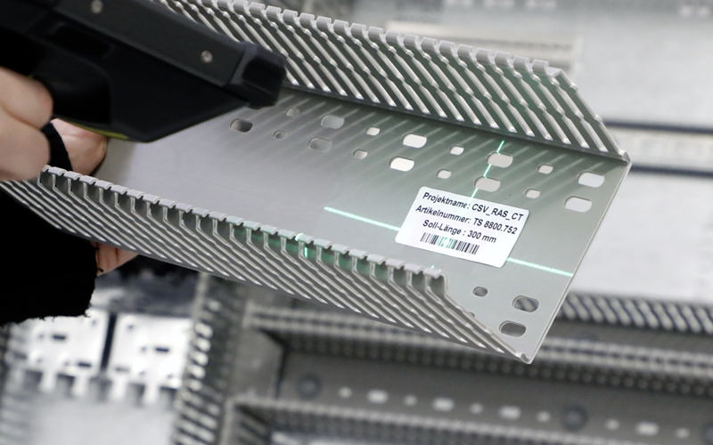 Met Eplan Pro Panel worden de benodigde gegevens automatisch gegenereerd en via het orderplatform RiPanel Processing Center doorgestuurd naar het knipstation. Daar zorgt een eenvoudige scan van de QR-code ervoor dat Eplan Smart Mounting exact aangeeft waar elk onderdeel op de montageplaat geplaatst moet worden.